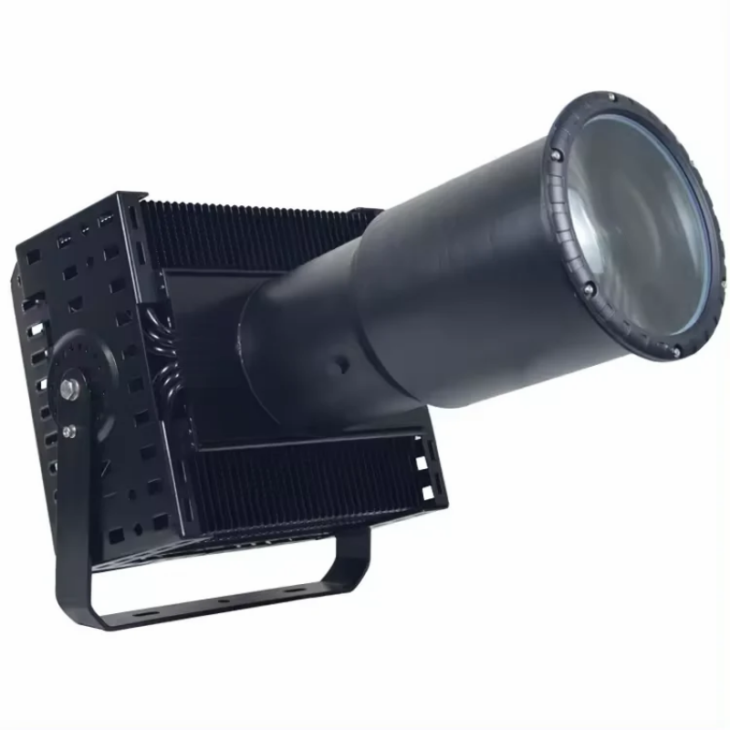 • COB LED searchlight with Bracket, the light body is made of aviation aluminium. The light adopts multi-layer optical lens technology, it can focus the light source to a point line, and the light can reach more than 1000 to 2000 meters.