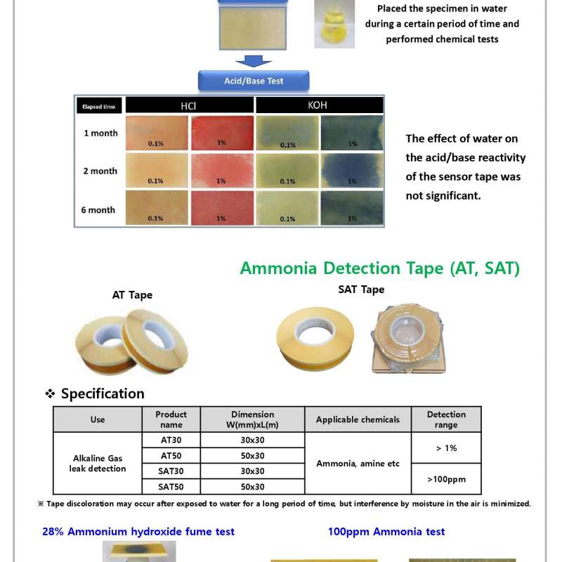 ACID, ALKALINE, AMMONIA, HYDROGEN, HYDROGEN SULFIDE, ORGANIC SOLVENT CHEMICAL LEAK DETECTION TAPE