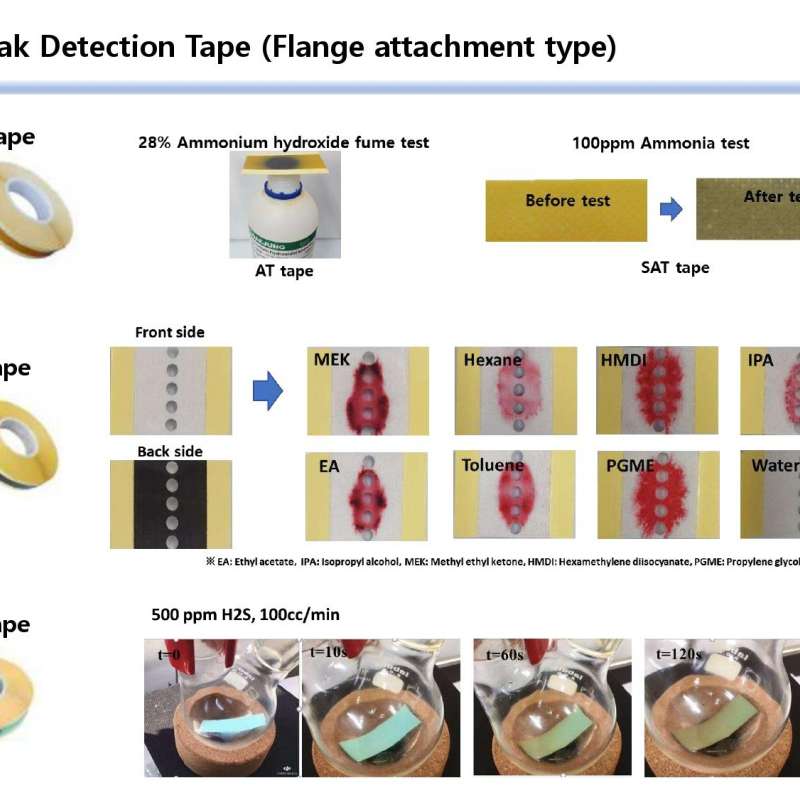A tape that visually notifies workers of leaks of hazardous chemicals used in industry.
