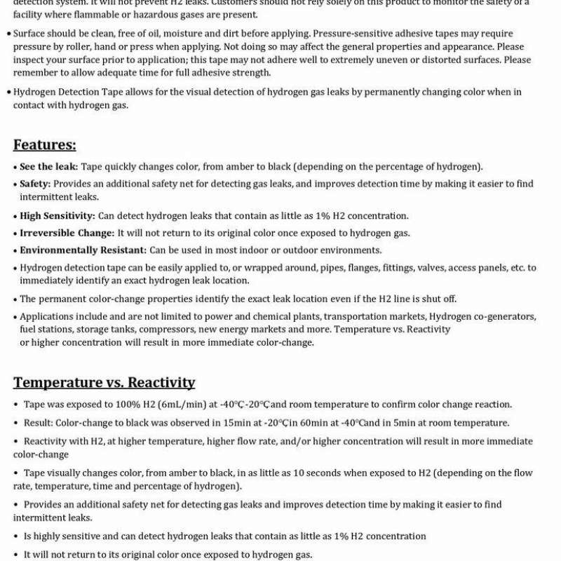 HYDROGEN DETECTION TAPE: