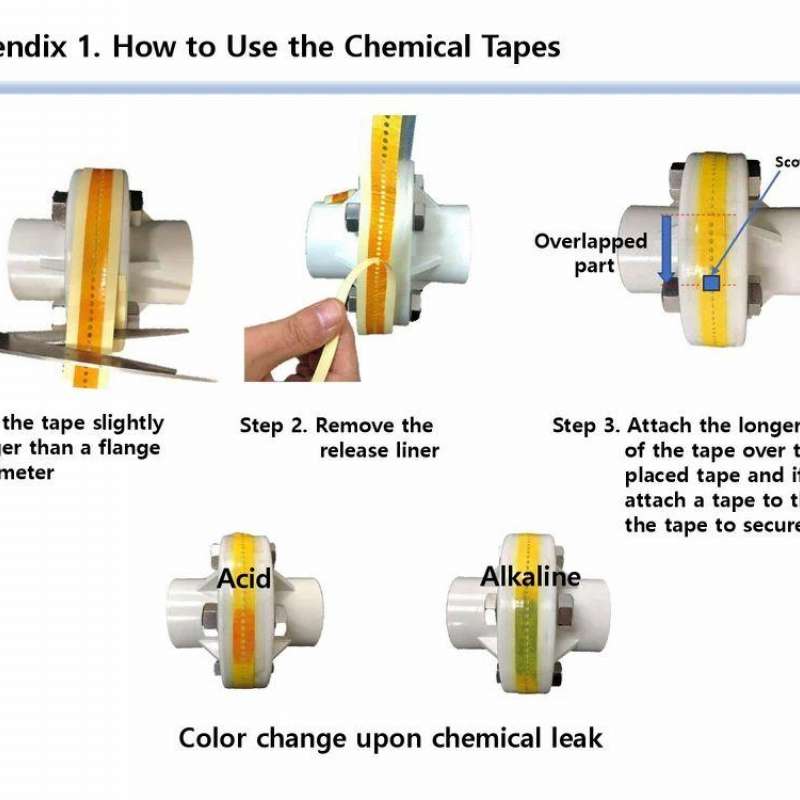 When in contact with concentrated hydrogen gas, the tape color changes from light gray to dark black in the event of a leak due to damage or seal failure.
